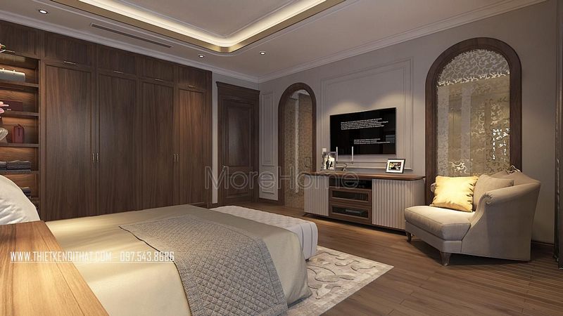 Trang trí nội thất phòng ngủ với nội thất gỗ óc chó từ tủ quần áo gỗ óc chó, kệ tủ gỗ óc chó, cửa gỗ óc chó mang lại sự sang trọng, thể hiện sự đẳng cấp của chính chủ nhân ngôi nhà