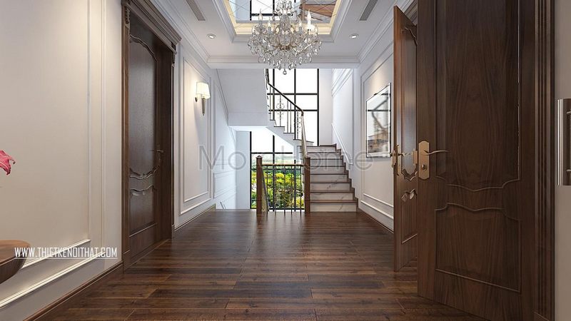 Sự kết hợp giữa tông màu sáng chủ đạo đã làm nổi bật không gian hành lang và tăng thêm tính thẩm mỹ của nó.