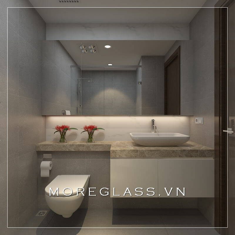 Mẫu thiết kế phòng tắm hiện đại, được bao bọc trong một bức kính trong suốt, để lọc tất cả các ánh nhìn.